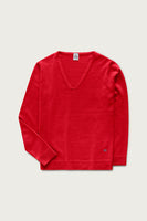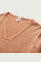14 号基本紧凑针织面料,精心编织的 V 领。