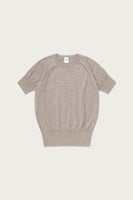 真冬から春まで、夏以外の 3 シーズンで着用をイメージして制作したハーフスリーブニット。 ヴィンテージのスウェットから着想を得た首元の V ガゼットとラグランスリーブでカシミアニットをカジュアルダウン。 また袖と裾のリブ幅を広くすることによりウエストと腕を適度にフィットさせ、 シンプルな半袖ニットながらスタイルアップ効果も抜群に。 ゆったりめに設定した肩幅と身頃のオーバ̶サイズラインはトレンド感があり、 裾のリブに向かって細くなるシルエットはデニムからスカート、 パンツインのスタイルまで、様々なボトムに相性抜群。 洗えるカシミアを存分に楽しむため、真夏以外の 3 シーズンで、様々な着こなしがお楽しみいただけます。