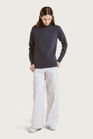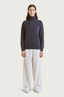 8 号基本紧身针织衫,搭配精心编织的高领毛衣。